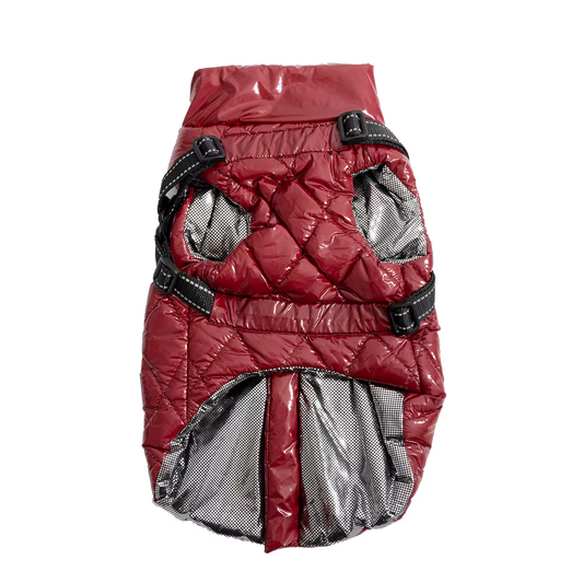 UniQ odeća za kućne ljubimce, PU zimski prsluk sa ugrađenim pojasom i reflektujućim detaljima, crvena