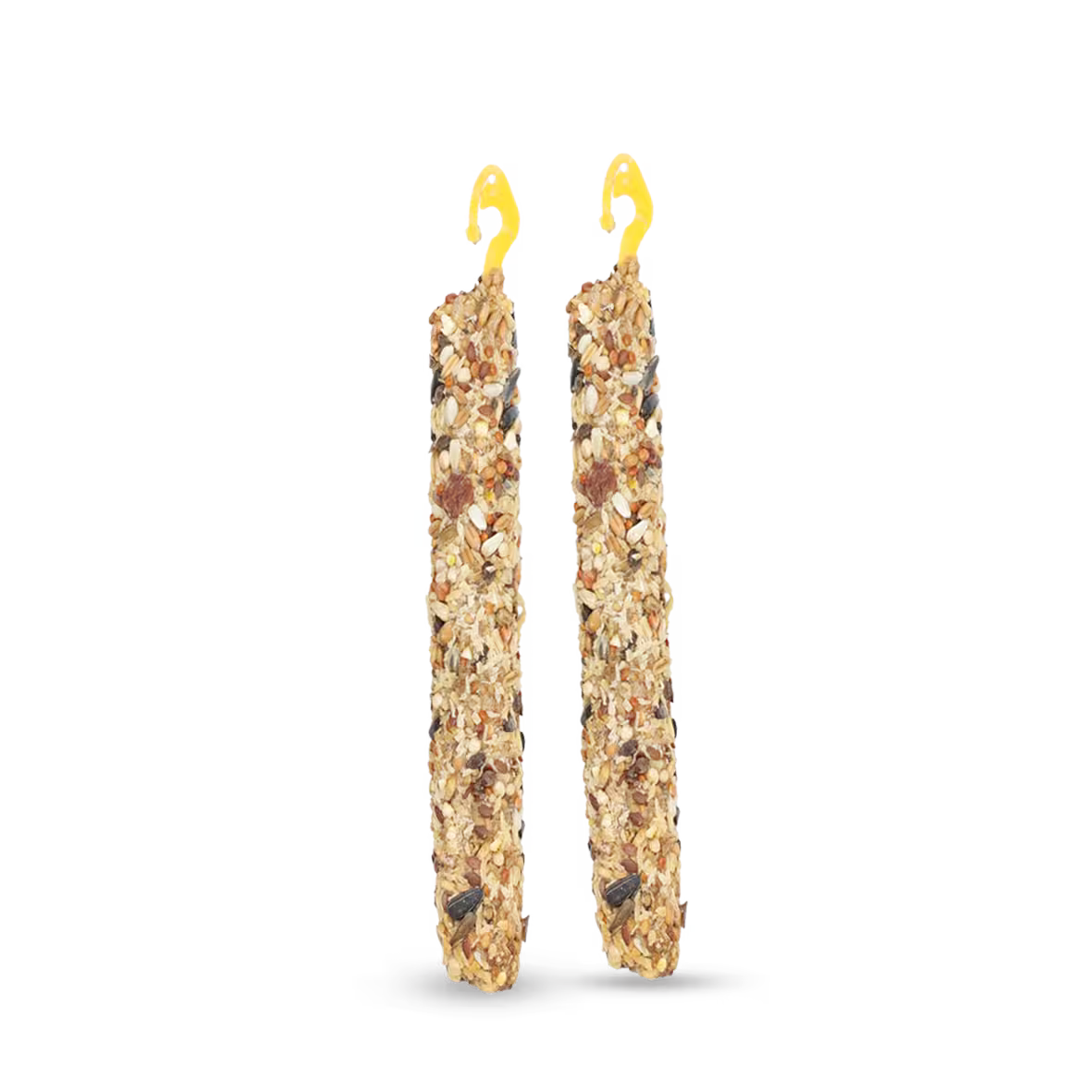 • U ove dve ukusne poslastice uključeno je sve što je vašem papagaju potrebno za odličnu zabavu, kao i za negu kljuna i kandži, uz istovremeno obezbeđivanje vrednih hranljivih sastojaka.