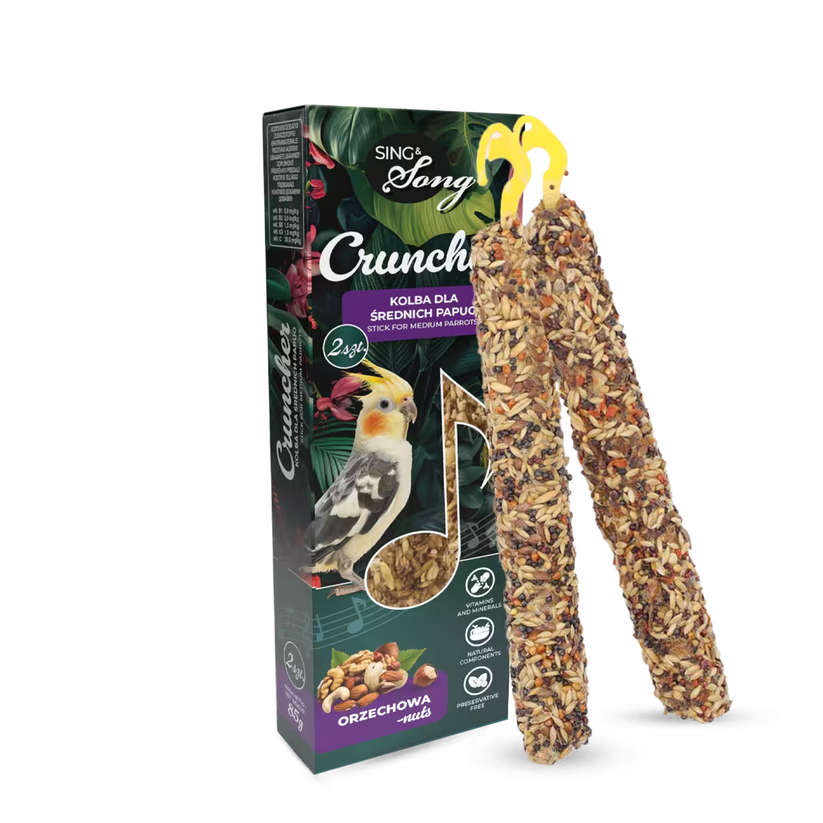 • U ovoj ukusnoj poslastici uključeno je sve što je vašem papagaju potrebno za odličnu zabavu, kao i za negu kljuna i kandži, uz istovremeno obezbeđivanje vrednih hranljivih materija.