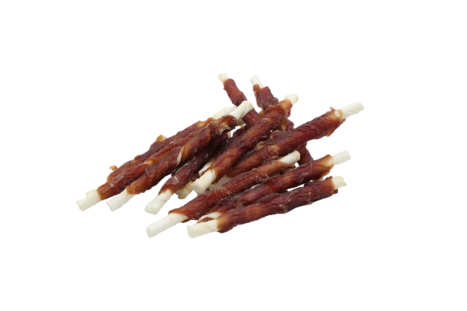 UNIQ poslastice za pse 500 g – pačetina obmotana oko štapića od sirove kože