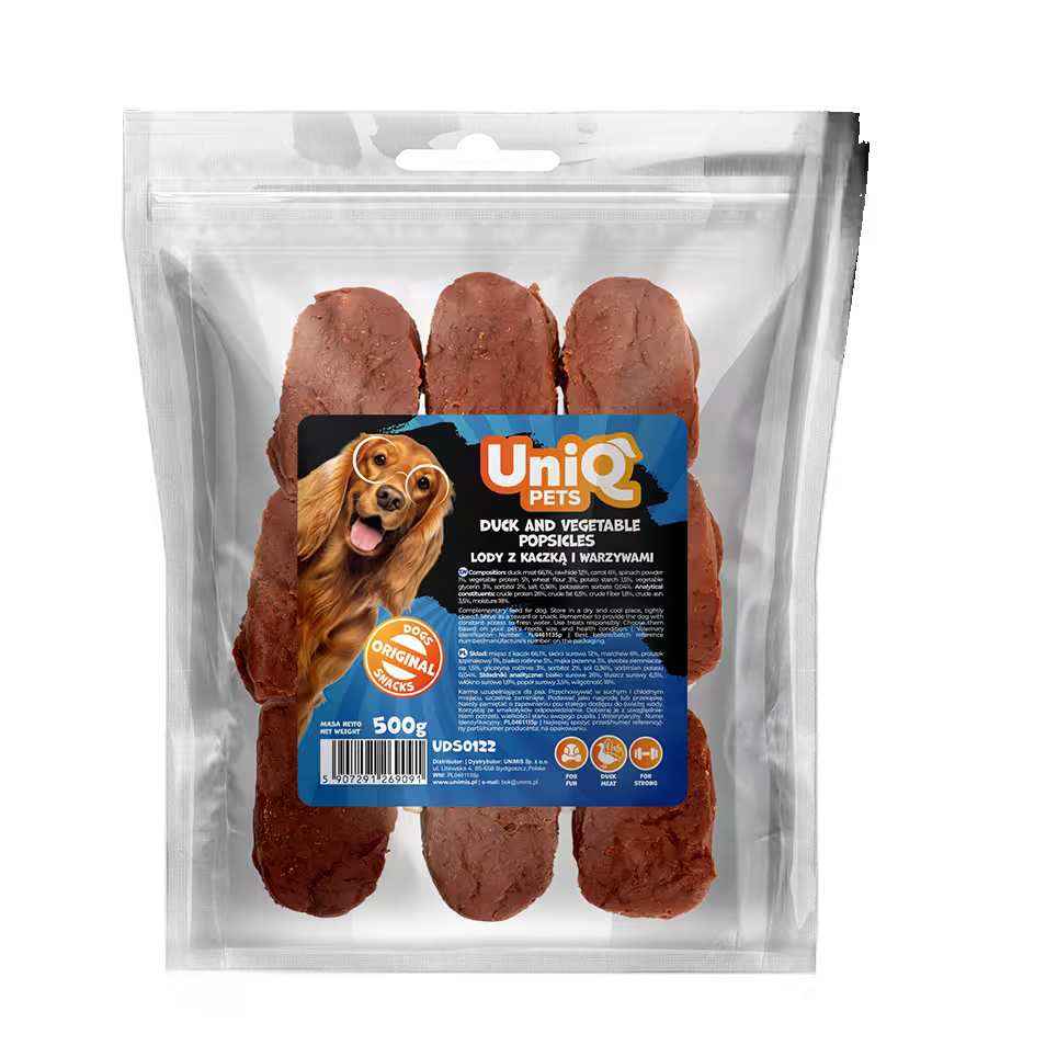 UniQ poslastice za pse, 500g, sladoledi od pačetine i povrća