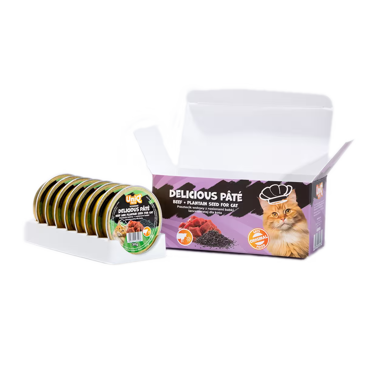 UniQ vlažna hrana za mačke, 30g×8kom, pašteta sa govedinom i semenom bokvice